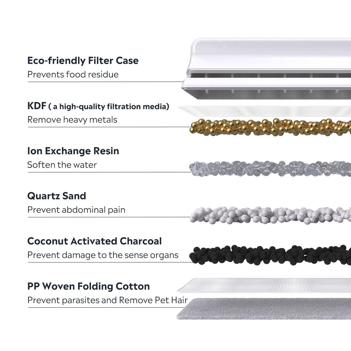 Safeguard your pet from urinary issues. Packed with KDF, quartz sand, coconut activated charcoal, and ion exchange resin, this fountain is ideal for cats and dogs craving fresh-tasting water. Rest easy, pet parents!
