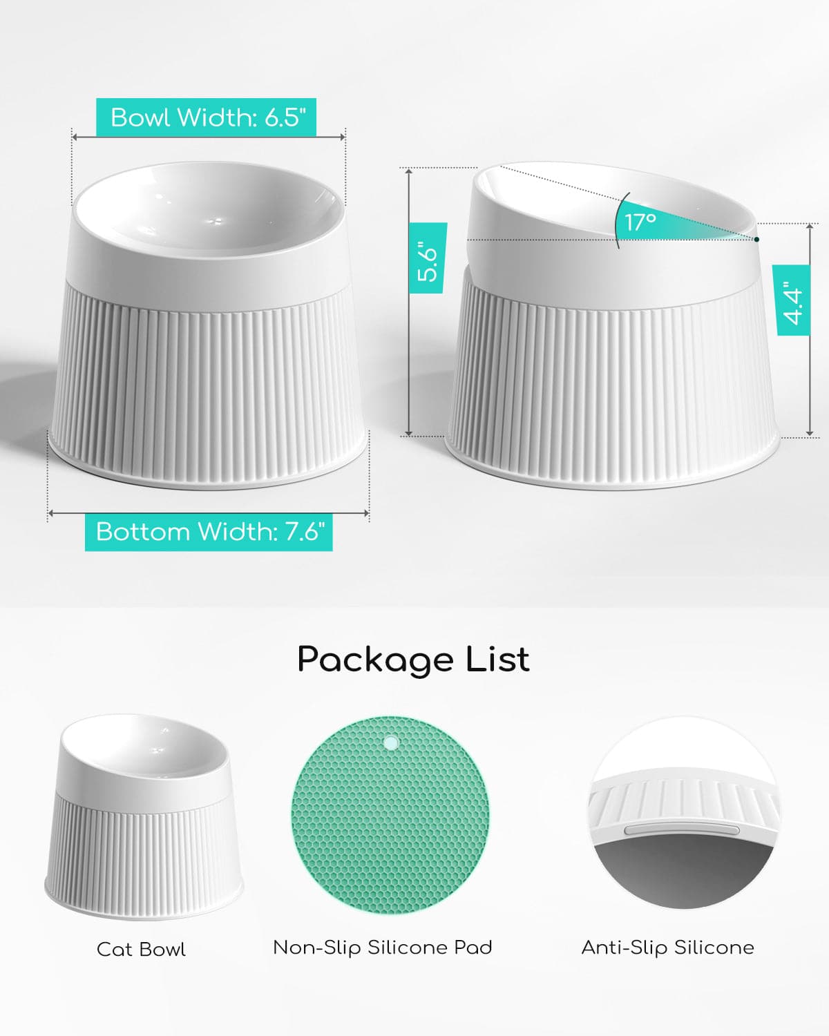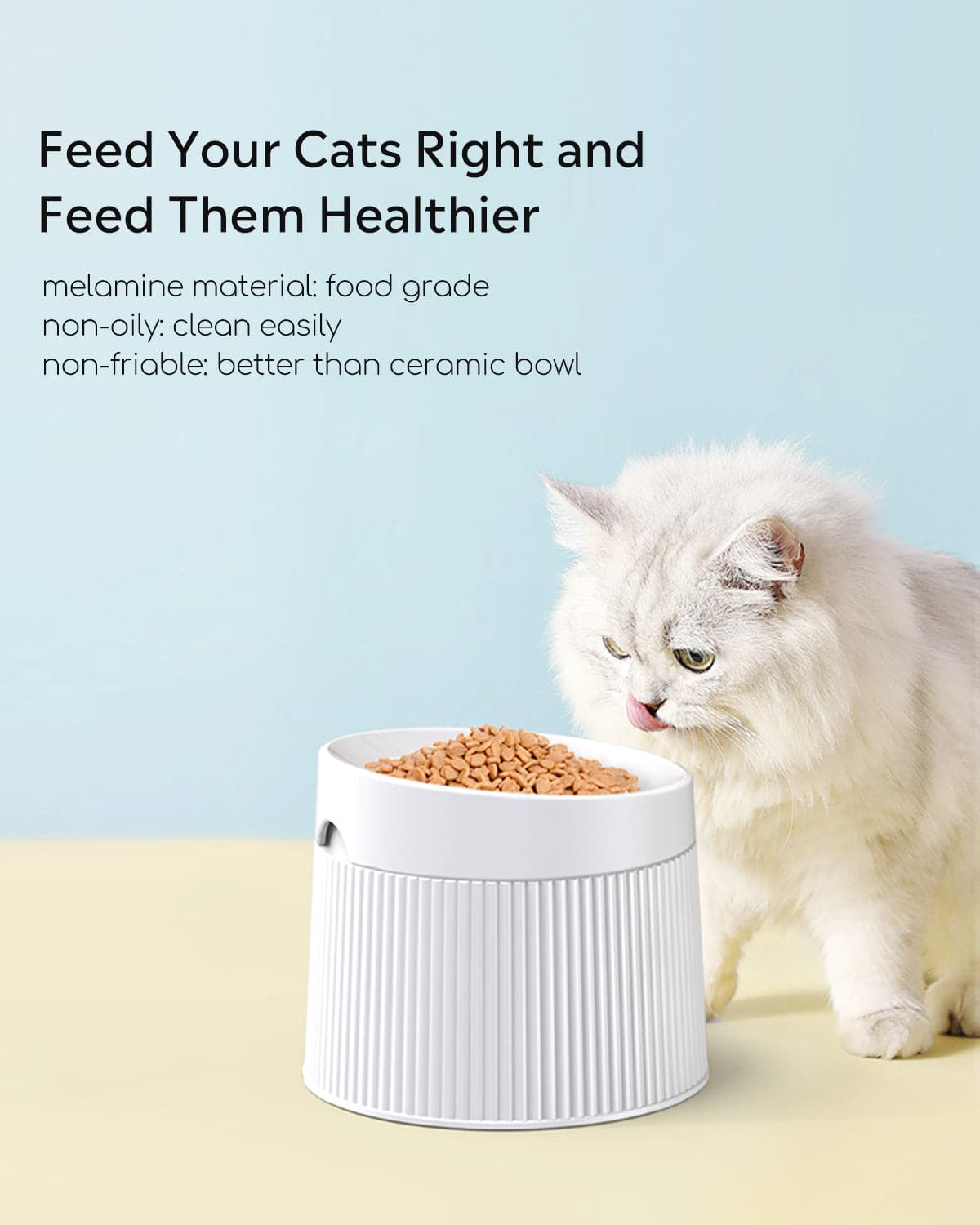 Especially handy for playful cats who often make a mess. With a durable anti-skid base and one additional silicone pad, it provides extra stability, preventing slips when your pets feast. It also protects your floor from scratches. Made of food-grade, durable material, the elevated cat bowls provide easy cleanup and longer-lasting use than ceramic and stainless steel bowls.