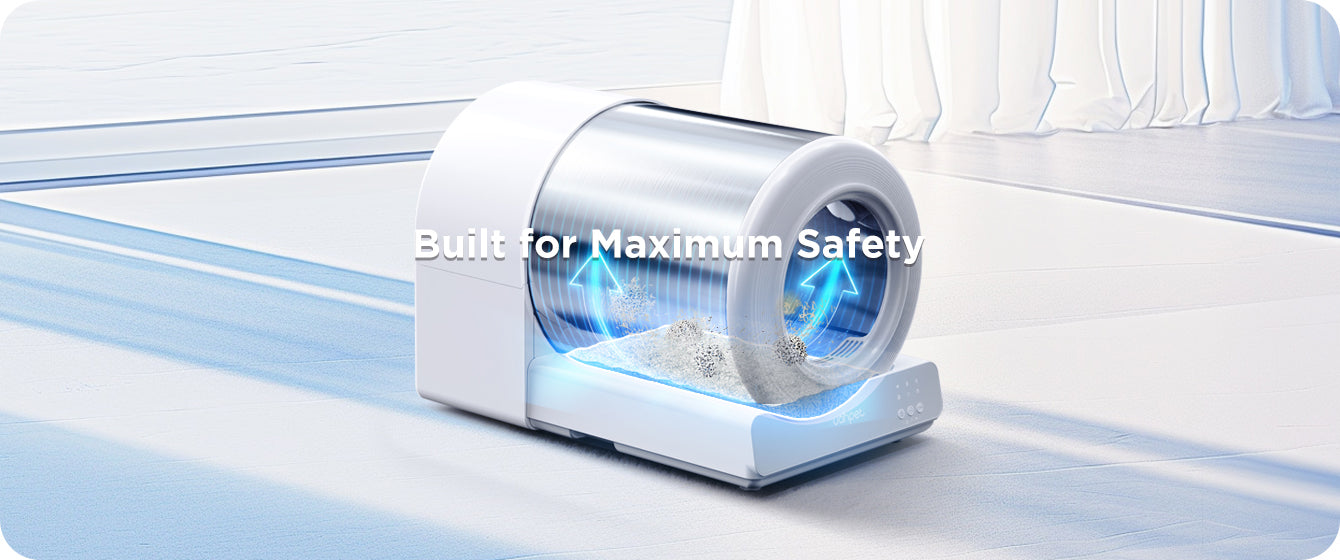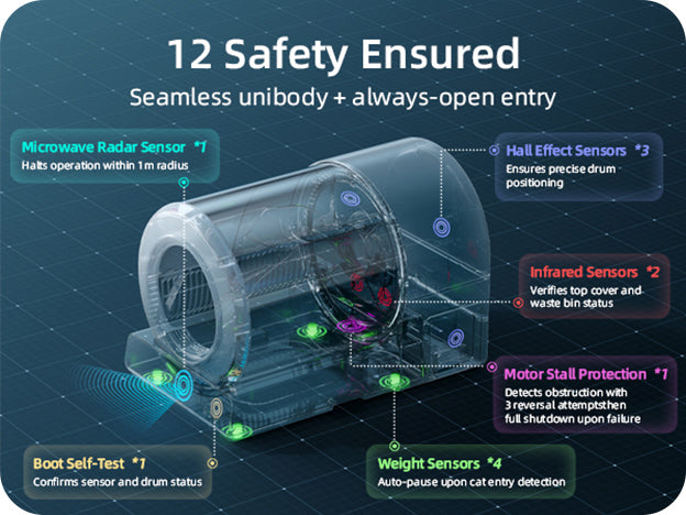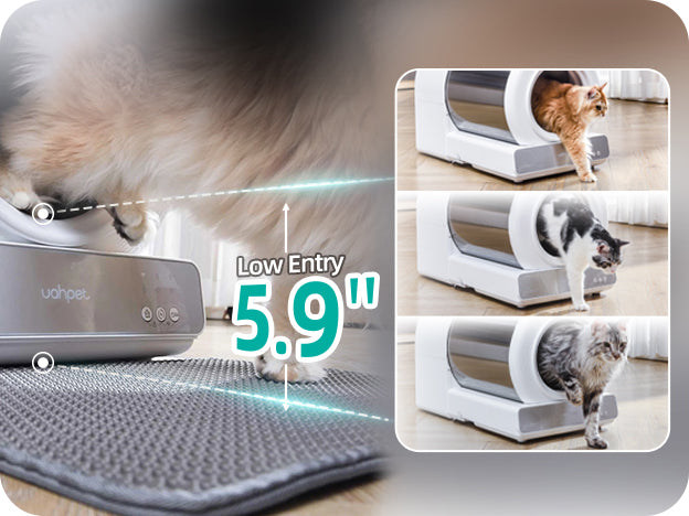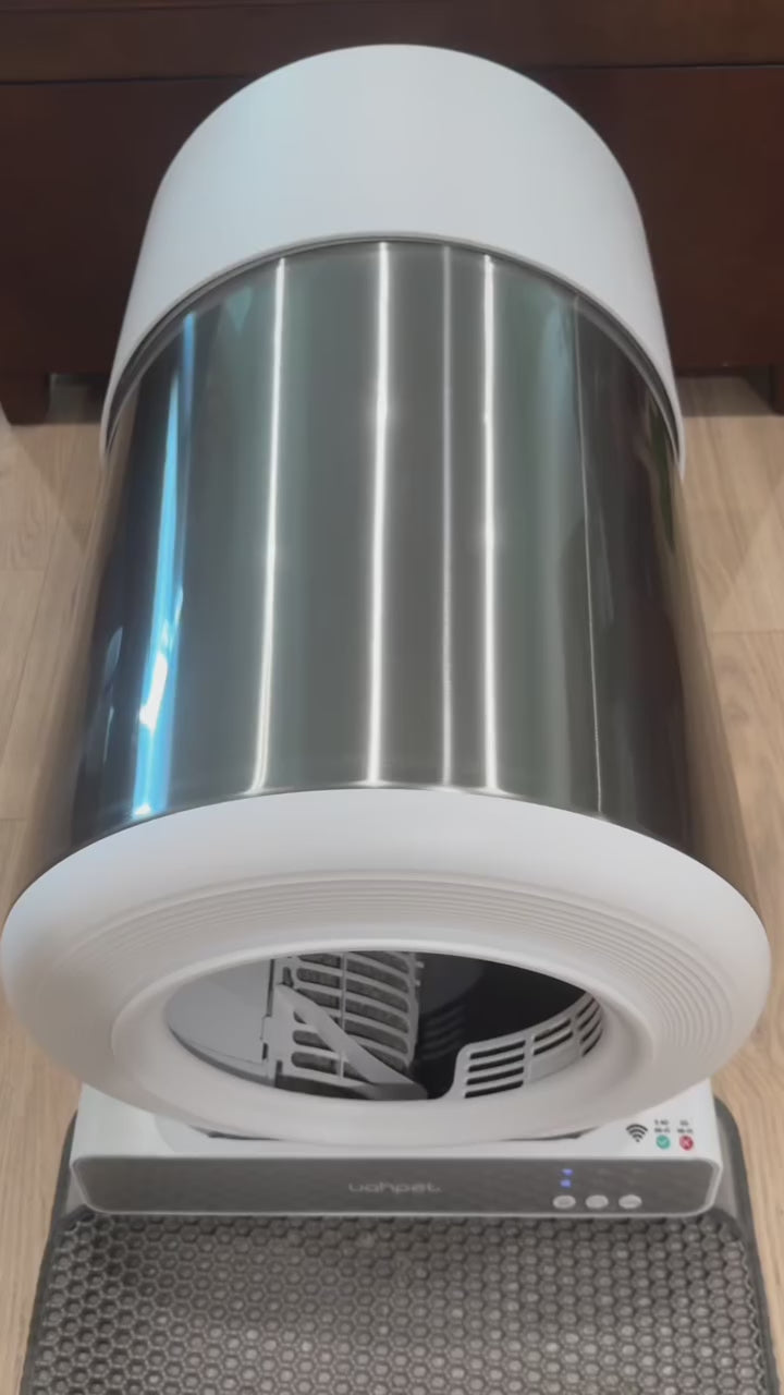 UAHPET uses a one-piece drum design with the waste bin positioned at the back. The litter chamber always rotates as a whole, keeping the entrance open at any angle. There is no closing mechanism, completely eliminating the risk of trapping your cat.